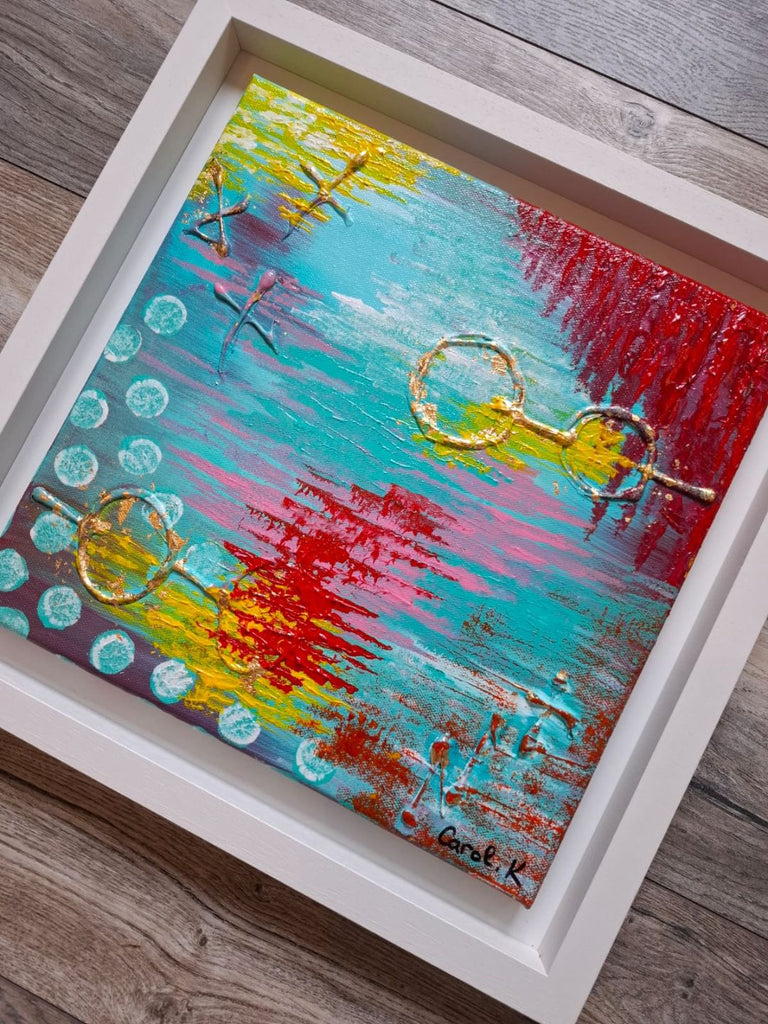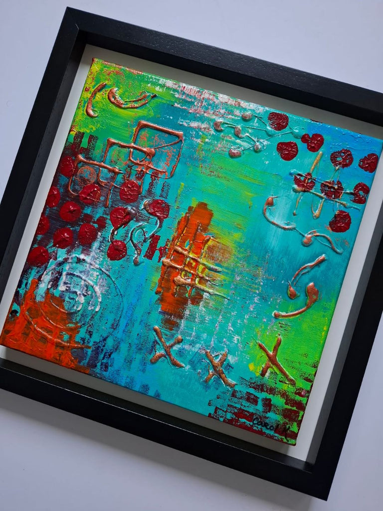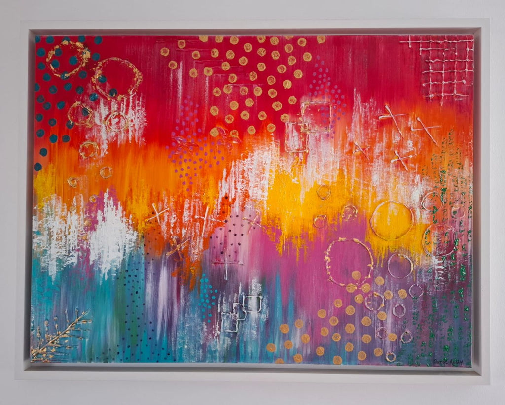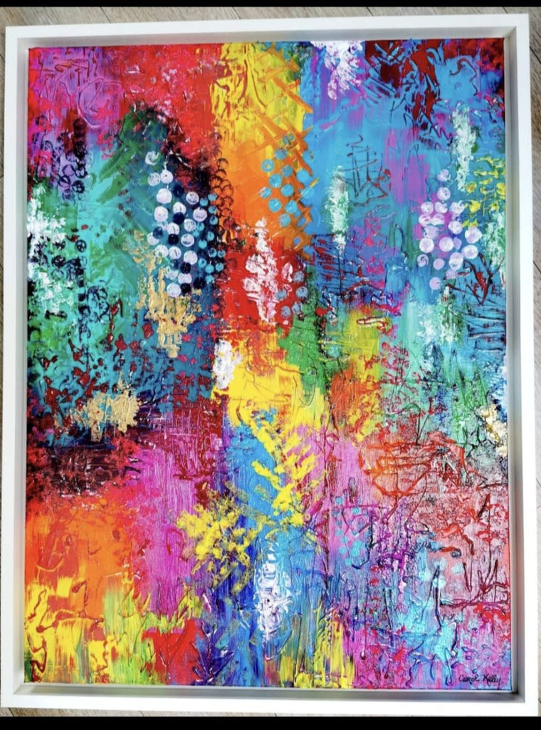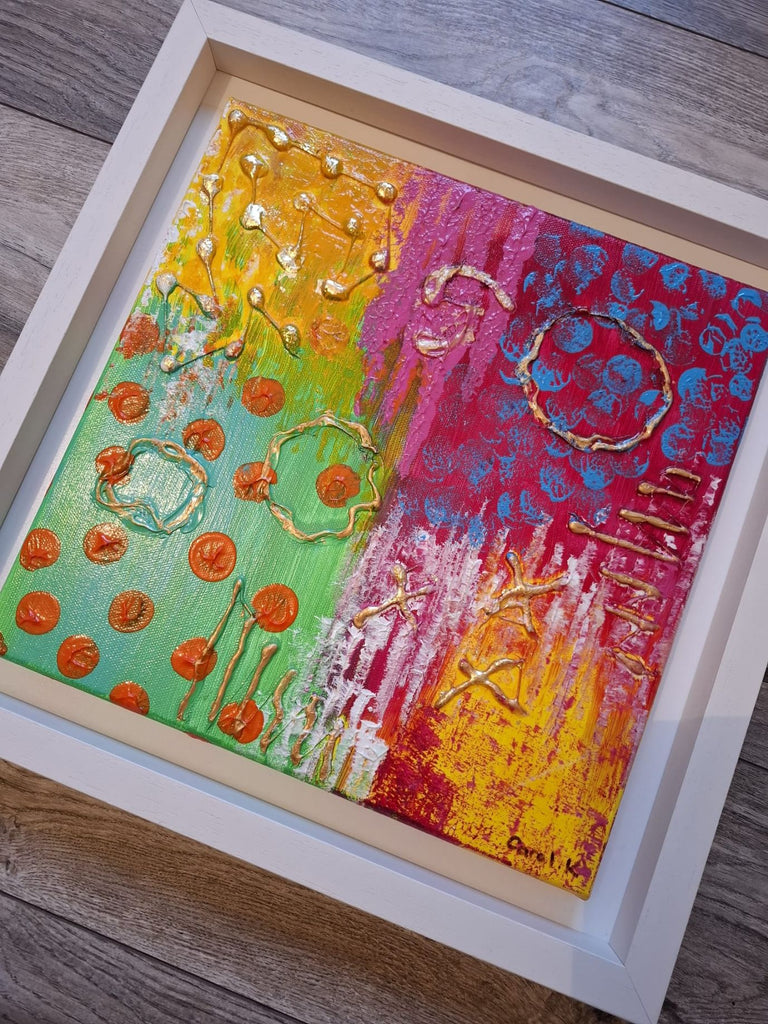 Discover Carol Kelly’s collection of original textured abstract paintings — each one a unique expression of colour, depth, and emotion. Handcrafted on canvas and finished with gold leaf and clear varnish, these vibrant works bring light and movement to any space. Every piece is beautifully framed in a wooden floater frame, ready to hang and transform your home or workspace with creativity and character.